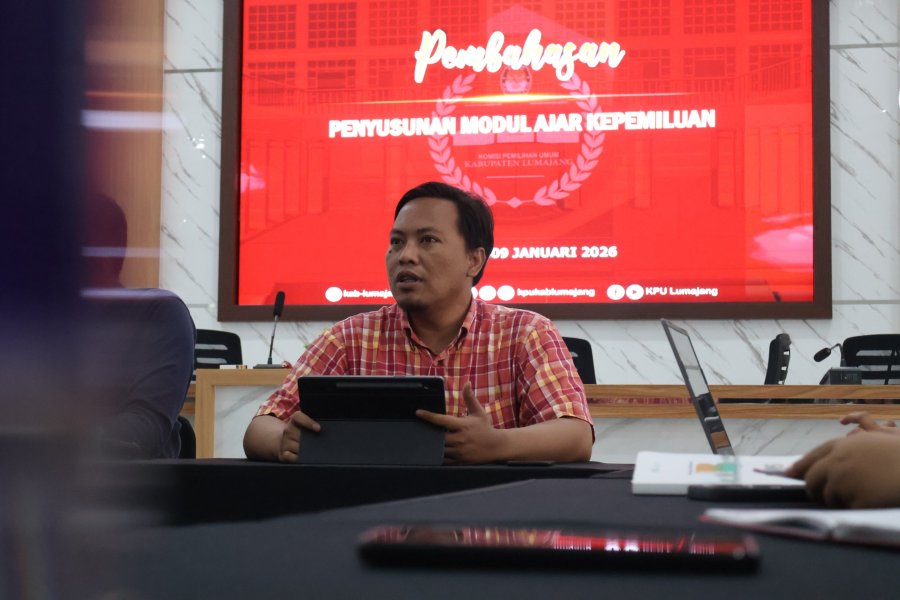 Lumajang, kab-lumajang.kpu.go.id - Komisi Pemilihan Umum (KPU) Kabupaten Lumajang menggelar kegiatan Pembahasan Penyusunan Modul Ajar Kepemiluan pada Jumat, 9 Januari 2026. Kegiatan ini dilaksanakan di Aula KPU Kabupaten Lumajang sebagai bagian dari upaya memperkuat pendidikan dan literasi kepemiluan bagi masyarakat.