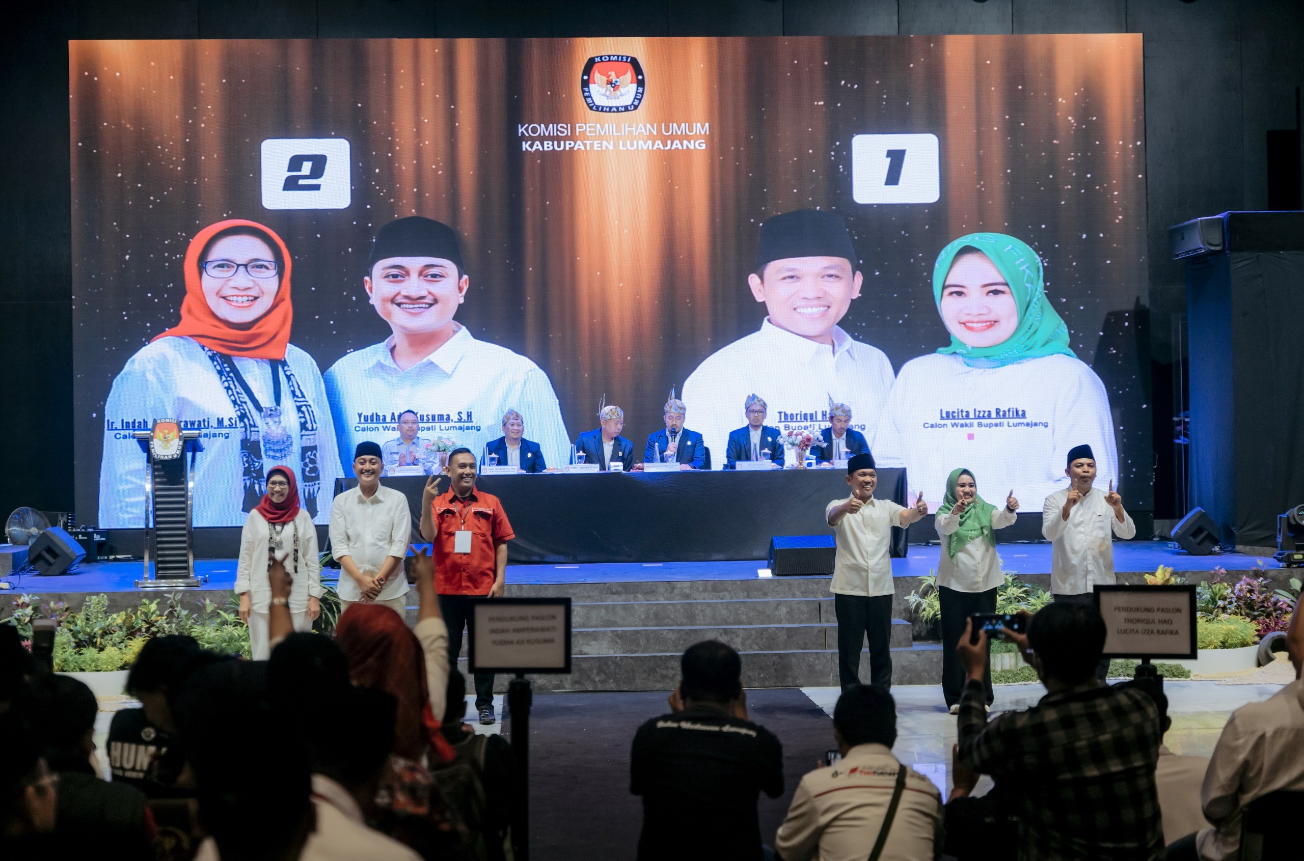 Berdasarkan hasil pengundian, pasangan Thoriqul Haq – Lucita Izza Rafika ditetapkan memperoleh Nomor Urut 1 sedangkan pasangan Ir. Indah Amperawati, M.Si – Yudha Adji Kusuma, S.H., ditetapkan memperoleh Nomor Urut 2 pada Pilkada Lumajang Tahun 2024.