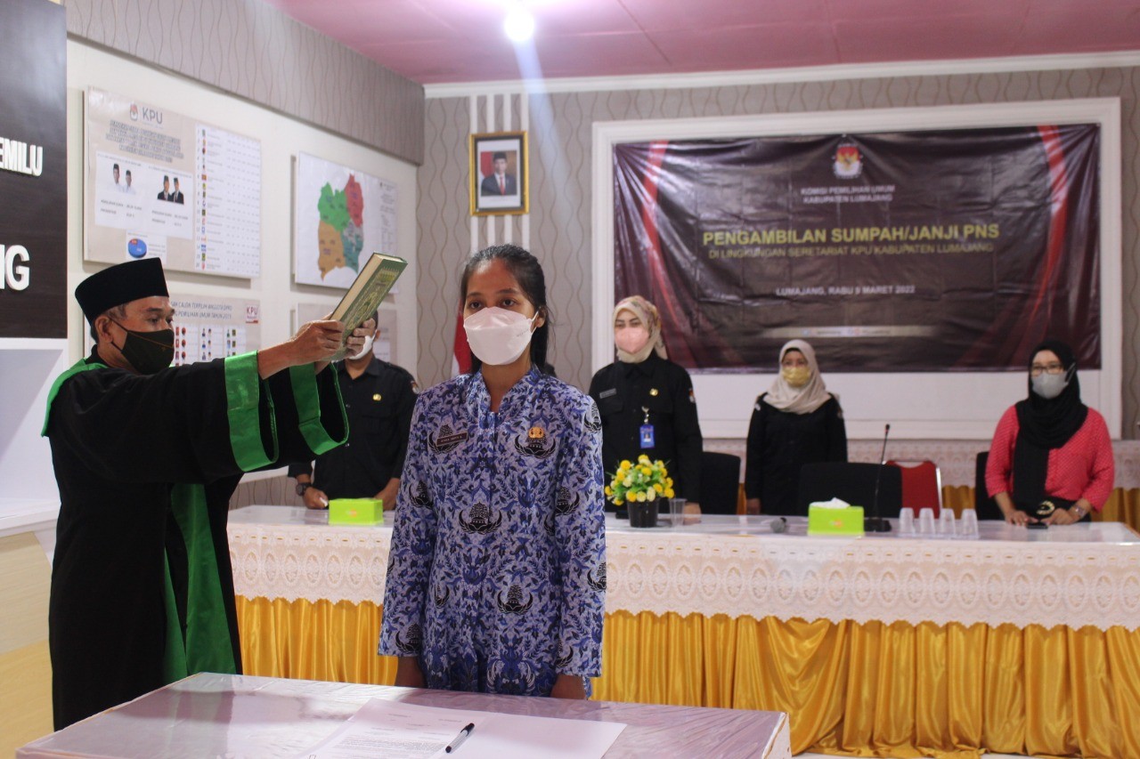 Resmi Menjadi PNS, Hari Ini 1 Orang PNS KPU Kabupaten Lumajang Ikuti Pengambilan Sumpah/Janji PNS