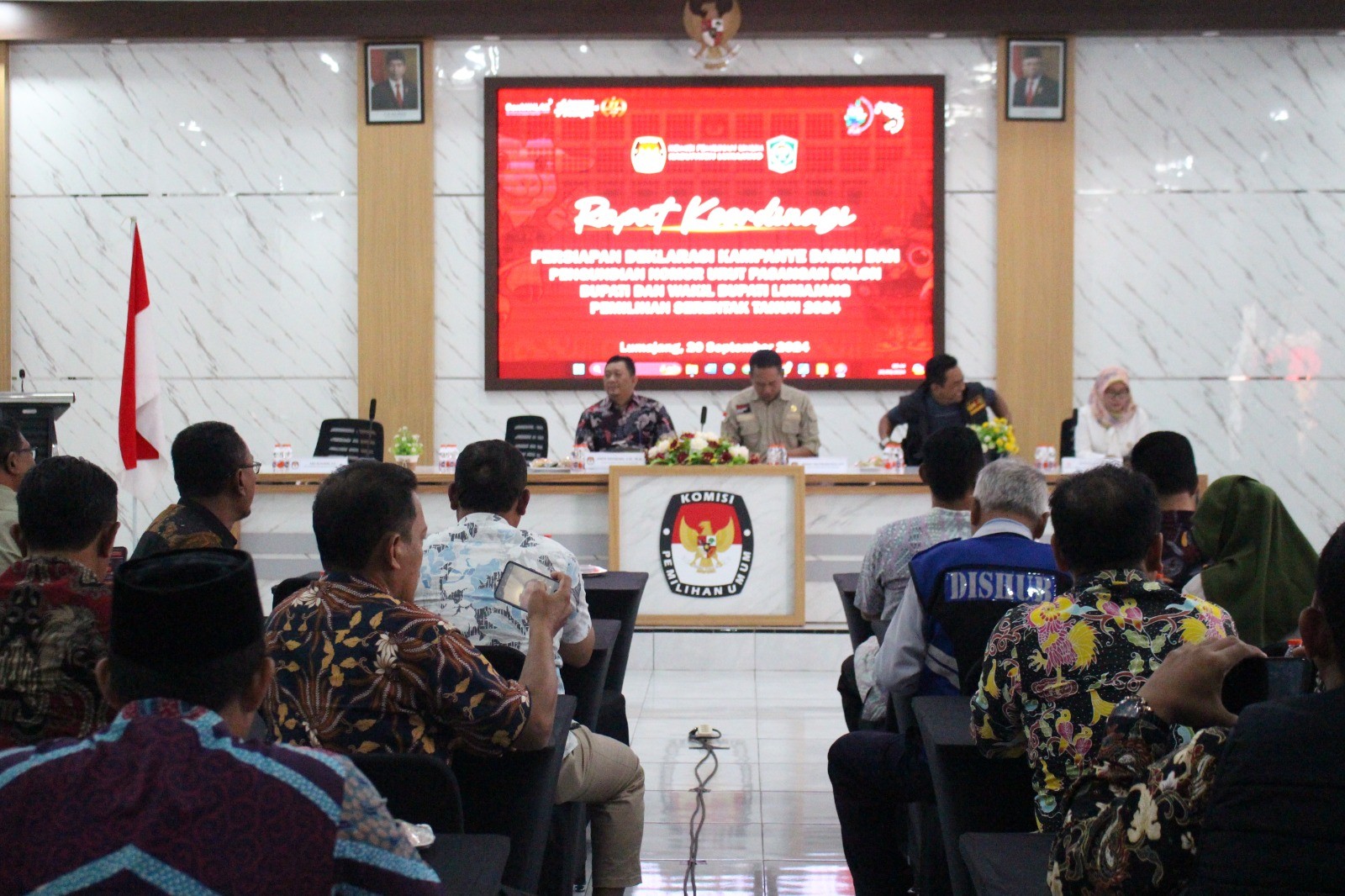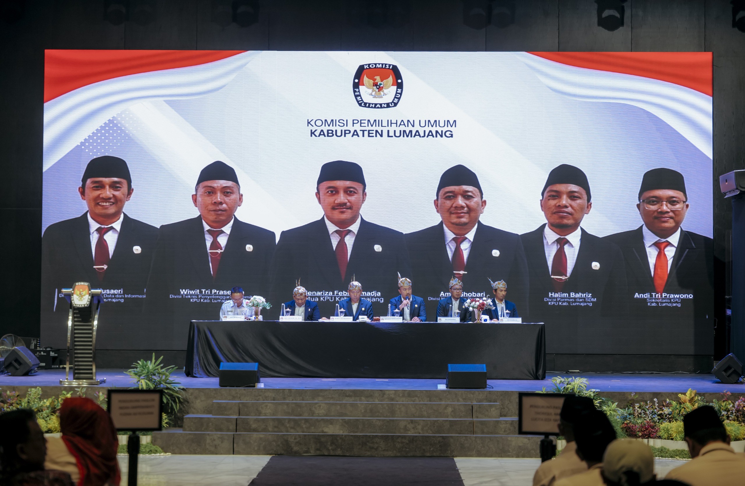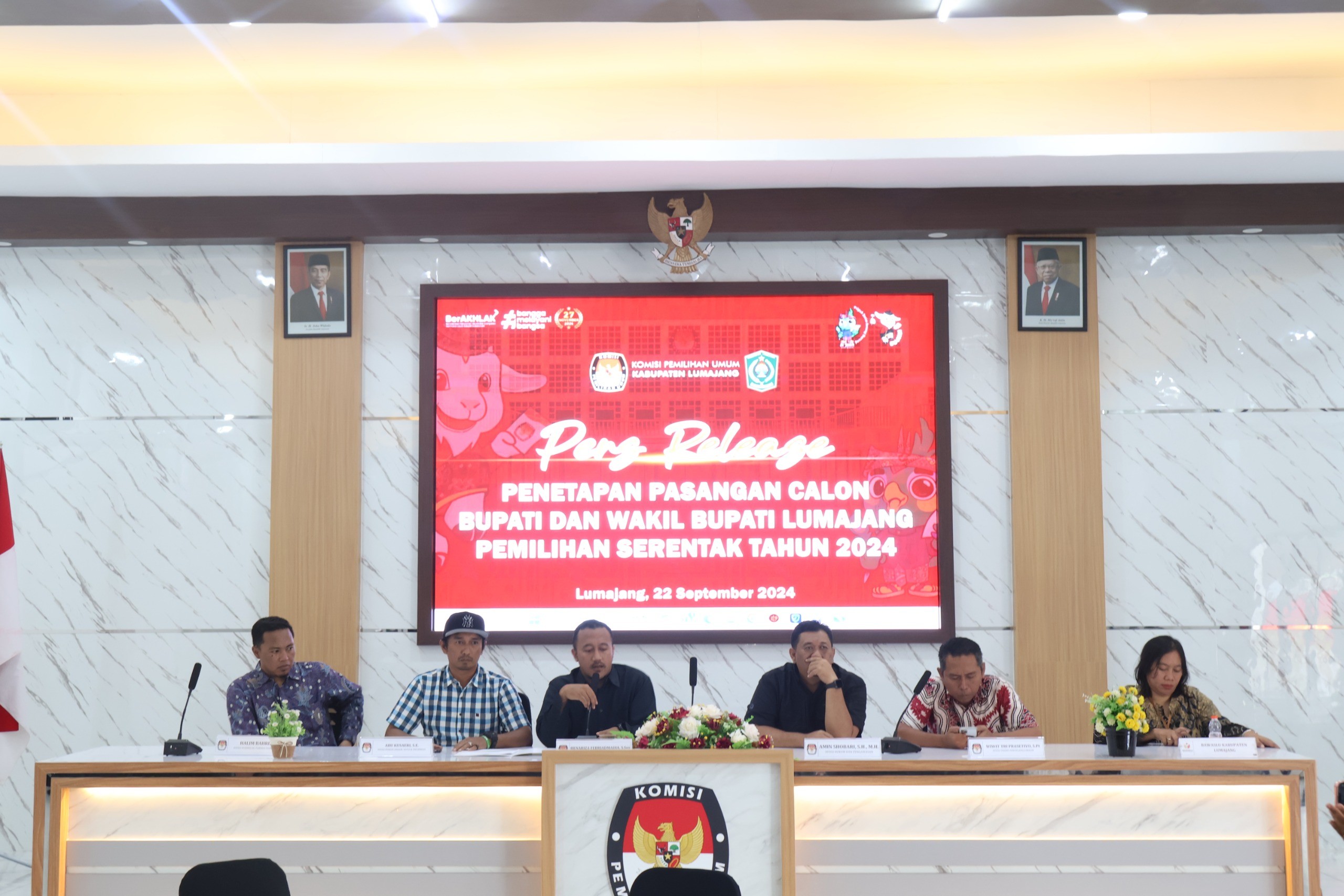 Lumajang, kab-lumajang.kpu.go.id – Komisi Pemilihan Umum (KPU) Kabupaten Lumajang menggelar Rapat Pleno Terbuka Pengundian dan Penetapan Nomor Urut Pasangan Calon Bupati dan Wakil Bupati Lumajang Pemilihan Serentak Tahun 2024. Rapat pleno dilaksanakan di Rock Convention Center (RCC), Jl. Lintas Timur No.275, Jogoyudan, Kec. Lumajang, Kabupaten Lumajang, Jawa Timur 67315, Senin, 23 September 2024. Rapat dipimpin langsung oleh Ketua KPU Kabupaten Lumajang Henariza Febriadmadja didampingi oleh Anggota KPU Kabupaten Lumajang dan Sekretaris KPU Kabupaten Lumajang, turut hadir dalam acara tersebut yakni Pj. Bupati Lumajang Indah Wahyuni, Ketua DPRD Kabupaten Lumajang Eko Adis Prayoga, SE, Kapolres Lumajang AKBP Mohammad Zainur Rofik, S.I.K., Dandim 0821 Lumajang Letkol Inf Ronny Wijaya Koesuma, Kepala Kejaksaan Negeri Lumajang Kosasih,S.H.,M.H., Ketua Pengadilan Agama Lumajang Dr. Drs. H. Rakhmat Hidayat Hs, S.H., M.H., Perwakilan Pengadilan Negeri Lumajang, Perwakilan Yonif 527 Lumajang, Ketua dan Anggota Bawaslu Lumajang, Pasangan Calon Bupati dan Wakil Bupati Lumajang beserta Tim Pemenangan, dinas instansi terkait, camat serta rekan-rekan media. Berdasarkan hasil pengundian, pasangan Thoriqul Haq – Lucita Izza Rafika ditetapkan memperoleh Nomor Urut 1 sedangkan pasangan Ir. Indah Amperawati, M.Si – Yudha Adji Kusuma, S.H., ditetapkan memperoleh Nomor Urut 2 pada Pilkada Lumajang Tahun 2024. Ketua KPU Kabupaten Lumajang, Henariza Febriadmadja memastikan seluruh tahapan yang dijalankan pada Pilkada Lumajang 2024 telah merujuk pada PKPU Nomor 2 Tahun 2024 tentang Tahapan dan Jadwal Pemilihan Gubernur dan Wakil Gubernur, Bupati dan Wakil Bupati, serta Walikota dan Wakil Walikota Tahun 2024.