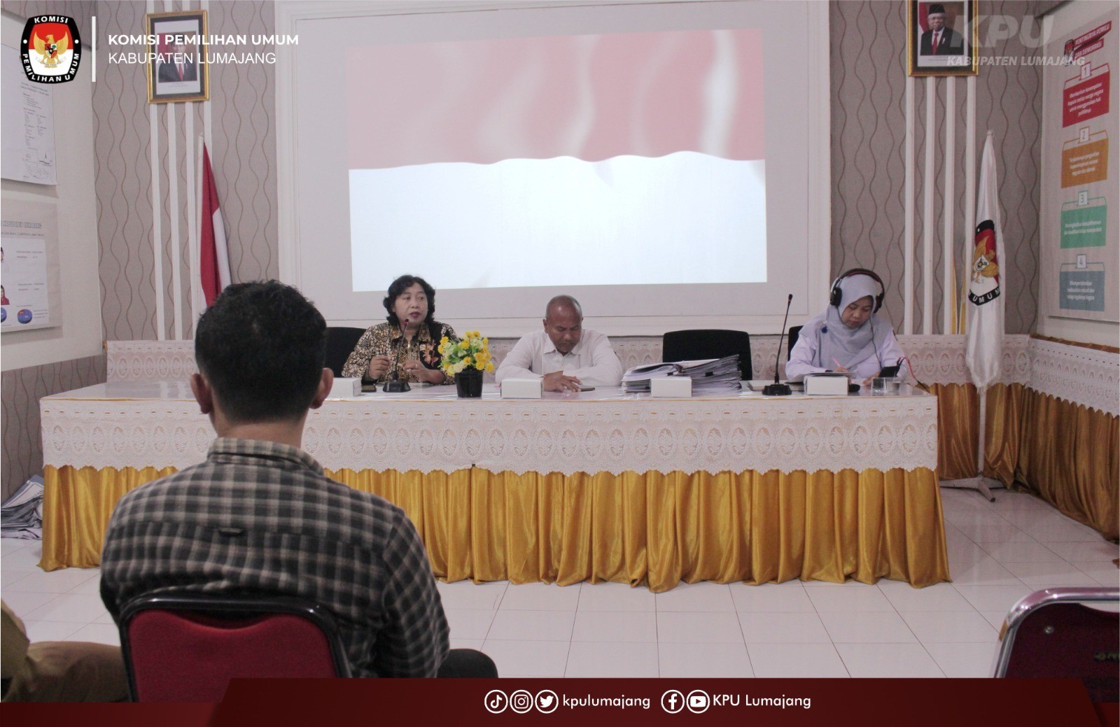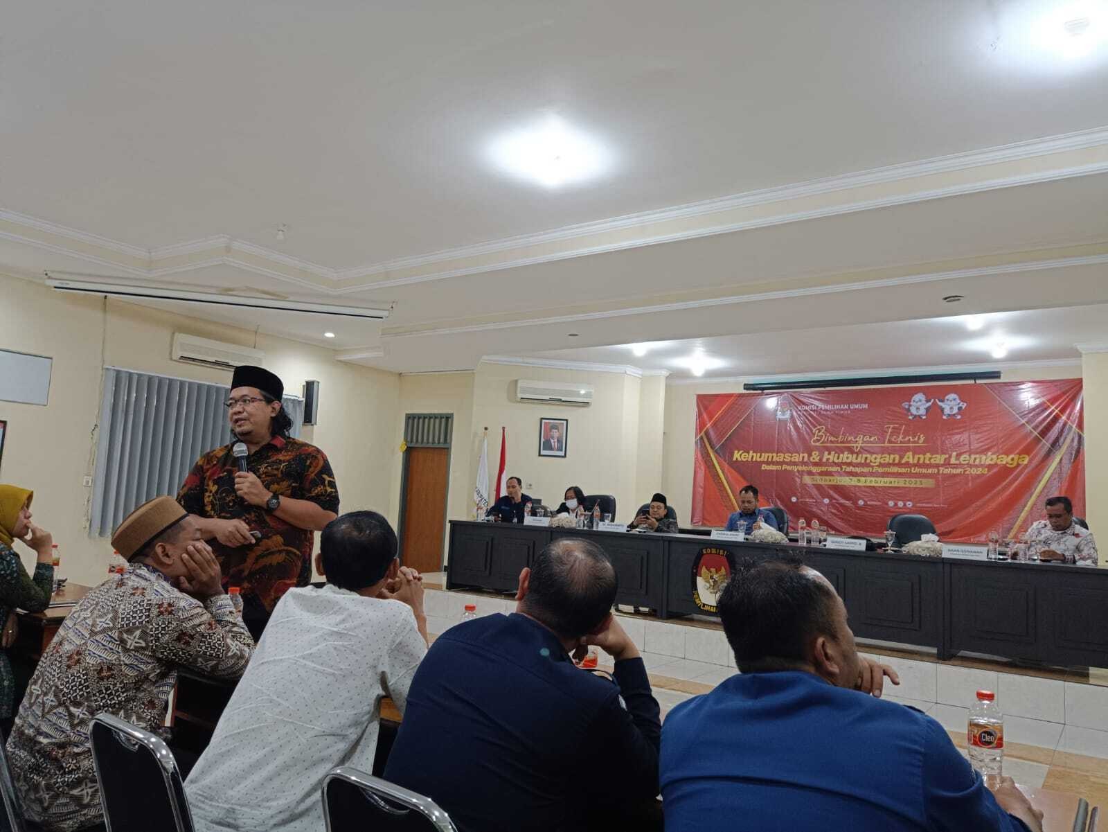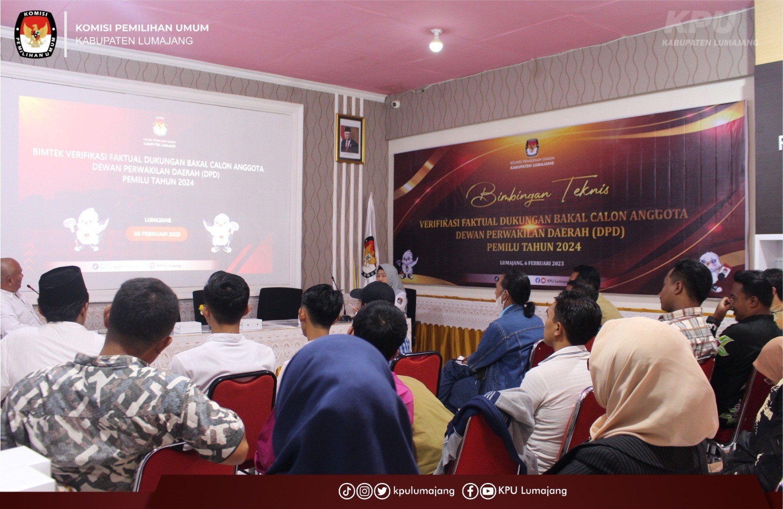 Lumajang, kab-lumajang.kpu.go.id – Komisi Pemilihan Umum (KPU) Kabupaten Lumajang melaksanakan Pemaparan Petunjuk Teknis (Juknis) dan Penyerahan Lembar Kerja Verifikasi Faktual Dukungan Calon Perseorangan DPD pada Pemilu Tahun 2024 kepada 21 Panitia Pemilihan Kecamatan (PPK) di wilayah kerja KPU Kabupaten Lumajang, Senin (13/2/23). Rapat dilaksankan di Rumah Pintar Pemilu (RPP) Kirana Agung KPU Kabupaten Lumajang dan dihadiri oleh 21 Anggota PPK yang membidangi bagian teknis penyelenggaraan. Acara dibuka oleh sambutan Ketua KPU Kabupaten Lumajang, Yuyun Baharita. Pada kesempatan tersebut Yuyun menyampaikan terima kasih kepada PPK atas suksesnya kegiatan Pelantikan Pantarlih. “Terimakasih atas kerja keras kawan-kawan PPK, kegiatan Pelantikan dan Apel Pantarlih kemarin berjalan dengan lancar, ucap Yuyun. Lebih lanjut Yuyun menjelaskan bahwa Divisi Teknis harus bekerja sesuai dengan Juknis dan Keputusan KPU. “Yang penting kawan-kawan harus selalu bekerja mengikuti arahan Juknis dan Keputusan yang berlaku. Jadikan aturan tersebut sebagai bekal kawan-kawan. Dan jangan lupa apa yang disampaikan hari ini dijadikan bekal ilmu untuk kawan-kawan sampaikan kepada PPS, terang Yuyun. Acara dilanjutkan oleh pemaparan Divisi Teknis Penyelenggaraan Nur Ismandiana. Beliau menyampaikan bahwa data yang akan diverifikasi faktual sejumlah 1.359 orang pendukung yang tersebar dalam 21 kecamatan. “Lembar Kerja Verifikasi Faktual Dukungan Calon Perseorangan DPD pada Pemilu Tahun 2024 yang akan kita serahkan hari ini diunduh dari Aplikasi Silon DPD sejumlah 1.359 orang pendukung yang tersebar dalam 21 kecamatan,” ujar Nur. Nur juga berpesan agar PPK segera melakukan bimbingan teknis kepada Panitia Pemungutan Suara (PPS) dan menyampaikan Penyerahan Lembar Kerja Verifikasi Faktual Dukungan Calon Perseorangan DPD pada Pemilu Tahun 2024 kepada PPS agar bisa segera dilakukan verifikasi faktual.