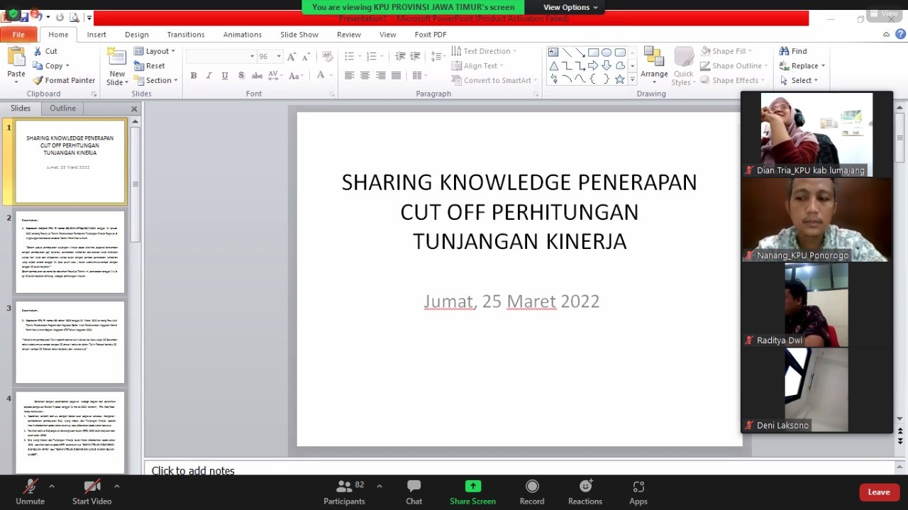 Siti Mudawiyah selaku Divisi Hukum dan Pengawasan KPU Kabupaten Lumajang sekaligus pemimpin rapat memaparkan beberapa hal terkait perubahan Peraturan Komisi Pemilihan Umum Republik Indonesia (PKPU RI) Nomor 2 Tahun 2021 Tentang Tata Naskah Dinas KPU, KPU Provinsi, dan KPU Kabupaten/Kota menjadi PKPU RI Nomor 8 Tahun 2021 Tentang Perubahan Atas PKPU Nomor 2 Tahun 2021 tentang Tata Naskah Dinas KPU, KPU Provinsi, dan KPU Kabupaten/Kota serta perubahan Keputusan KPU RI Nomor 564/HK.03.1-Kpt/04/KPU/VIII/2021 tentang Kode Klasifikasi Arsip dan Pengkodean Naskah Dinas di Lingkungan KPU, KPU Provinsi, dan KPU Kabupaten/Kota menjadi Keputusan KPU RI Nomor 57 Tahun 2022 tentang Kode Klasifikasi Arsip dan Pengkodean Naskah Dinas di Lingkungan KPU, KPU Provinsi, dan KPU Kabupaten/Kota.