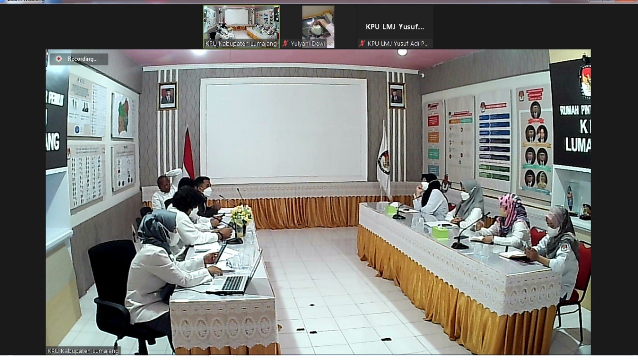 Lumajang, kab-lumajang.kpu.go.id – Bertempat di Rumah Pintar Pemilu (RPP) Kirana Agung, Komisi Pemilihan Umum (KPU) Kabupaten Lumajang gelar Rapat Pleno rutin, Senin (21/3/2022). Rapat kali ini dihadiri oleh Ketua beserta Anggota KPU Kabupaten Lumajang, Plt. Sekretaris serta Seluruh Kepala Sub Bagian (Kasubbag) Sekretariat KPU Kabupaten Lumajang. Rapat Pleno dibuka oleh Ketua KPU Kabupaten Lumajang, Yuyun Baharita. Pleno kali ini membahas beberapa hal, antara lain : Rencana Rekapitulasi Data Pemilih Berkelanjutan (DPB) Triwulan I yang akan dilaksanakan hari Selasa tanggal 29 Maret 2022 dengan mengundang Badan Pengawas Pemilu (Bawaslu), Dinas Kependudukan dan Pencatatan Sipil (Dispendukcapil), Tentara Nasional Indonesia (TNI), Kepolisian Negara Republik Indonesia (Polri), Komando Distrik Militer (Kodim) 0821, Kementerian Agama (Kemenag) serta Dinas Sosial (Dinsos) Kabupaten Lumajang. “Terkait Rekapitulasi DPB Triwulan I, rencananya akan dilaksanakan hari Selasa tanggal 29 Maret 2022 dengan mengundang Stakeholder terkait. Pembahasan agenda kegiatan Divisi Hukum yaitu Sosialisasi Keputusan KPU Nomor 57 Tahun 2022 Tentang Kode Klasifikasi Arsip dan Pengkodean Naskah Dinas di Lingkungan Komisi Pemilihan Umum, Provinsi, dan Komisi Pemilihan Umum Kabupaten/Kota juga disampaikan oleh divisi Hukum (Ibu Siti Mudawiyah) dan Divisi Sosdiklih, Parmas dan SDM (Bpk. Yusuf Adi Pamungkas) membahas perihal kegiatan audiensi dengan Forkopimda dan Dinas/Instansi terkait. "Saya berharap bahwa kegiatan audiensi dengan Forkopimda dan Dinas/Instansi terkait tidak hanya sekedar kunjungan biasa, tetapi masing-masing mempunyai maksud dan tujuan yang jelas sehingga kegiatan audiensi bisa berjalan dengan maksimal" ujarnya. Beberapa hal terkait peningkatan SDM juga disampaikan oleh Plt. SeKretaris KPU Kab. Lumajang (Yulyani Dewi). Diperoleh kesepakatan beberapa hal dalam Pleno hari ini. Semangat untuk mencapai tujuan yang baik menjadi pemicu sehingga KPU Kabupaten Lumajang selalu berinovasi dalam bekerja.