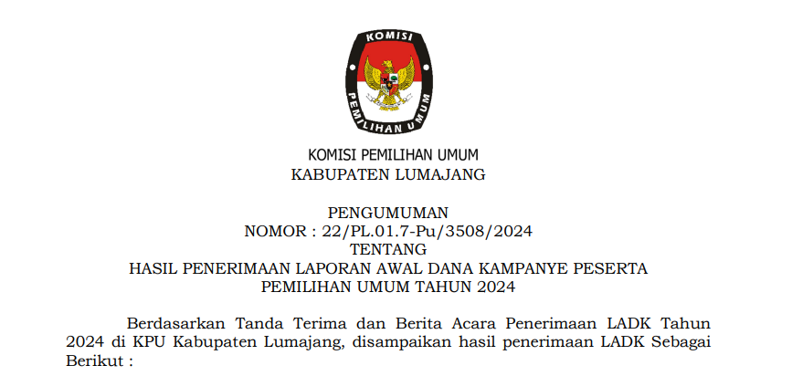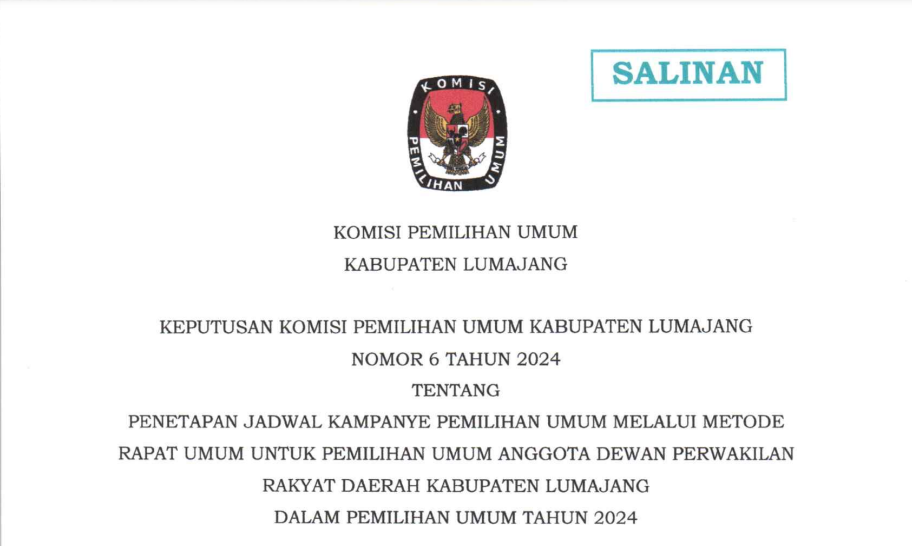 KEPUTUSAN KOMISI PEMILIHAN UMUM KABUPATEN LUMAJANG NOMOR 6 TAHUN 2024 TENTANG PENETAPAN JADWAL KAMPANYE PEMILIHAN UMUM MELALUI METODE RAPAT UMUM UNTUK PEMILIHAN UMUM ANGGOTA DEWAN PERWAKILAN RAKYAT DAERAH KABUPATEN LUMAJANG DALAM PEMILIHAN UMUM TAHUN 2024